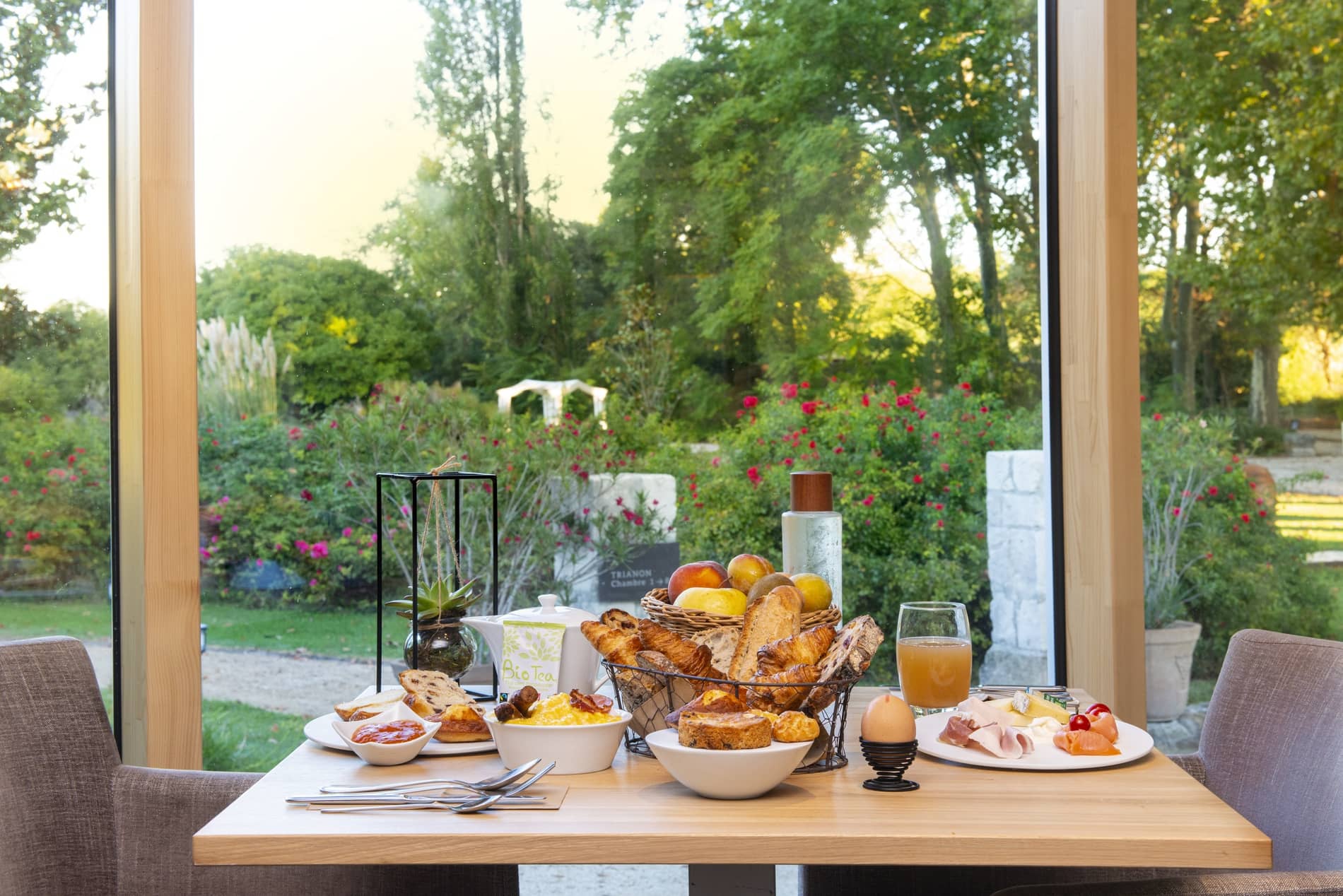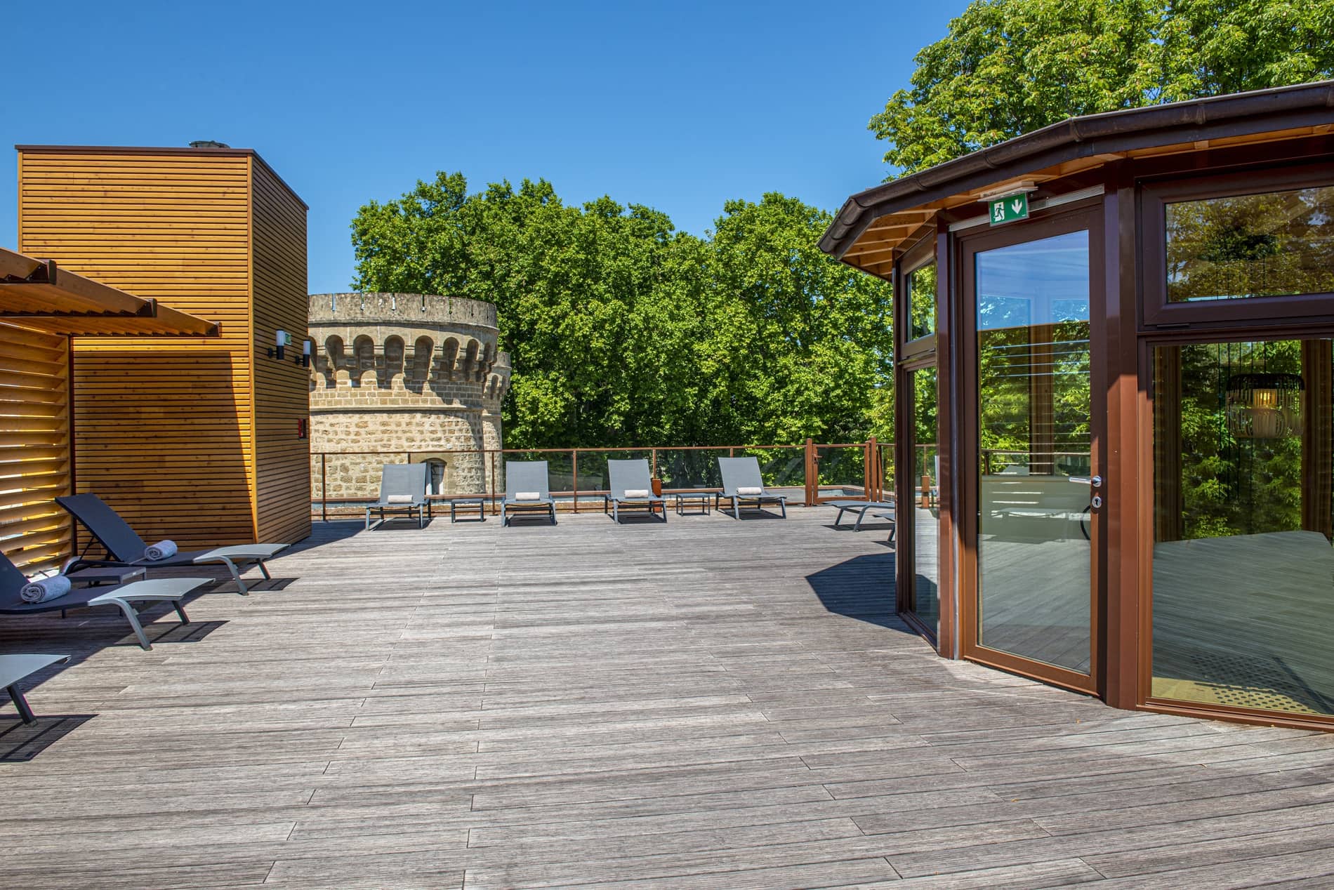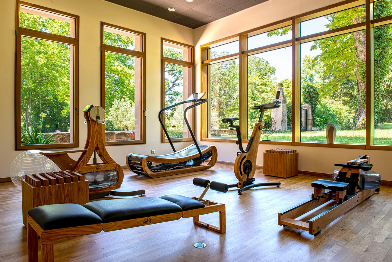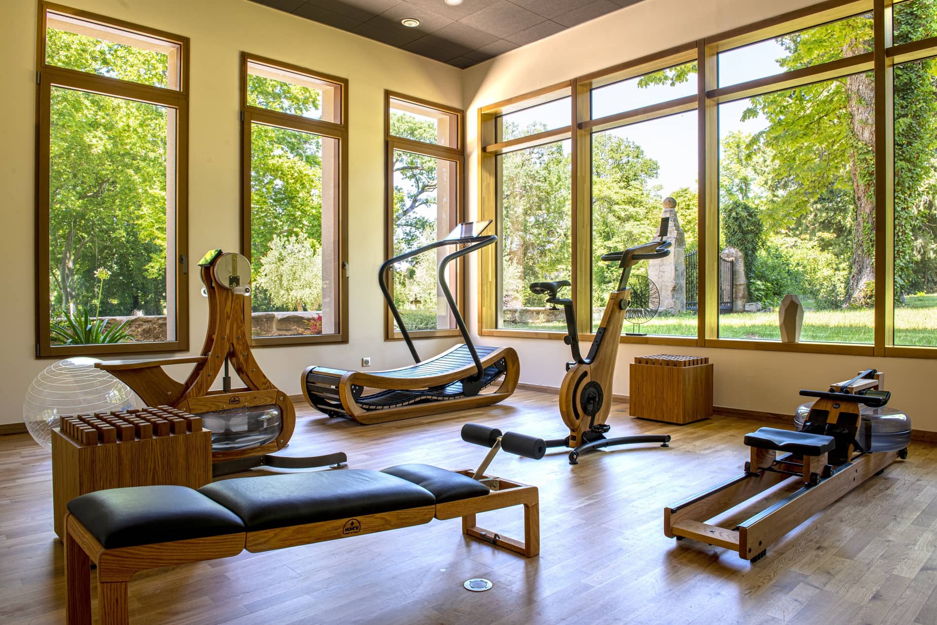 Piscine intérieure du Bio Spa avec grande baie vitrée donnant sur le parc