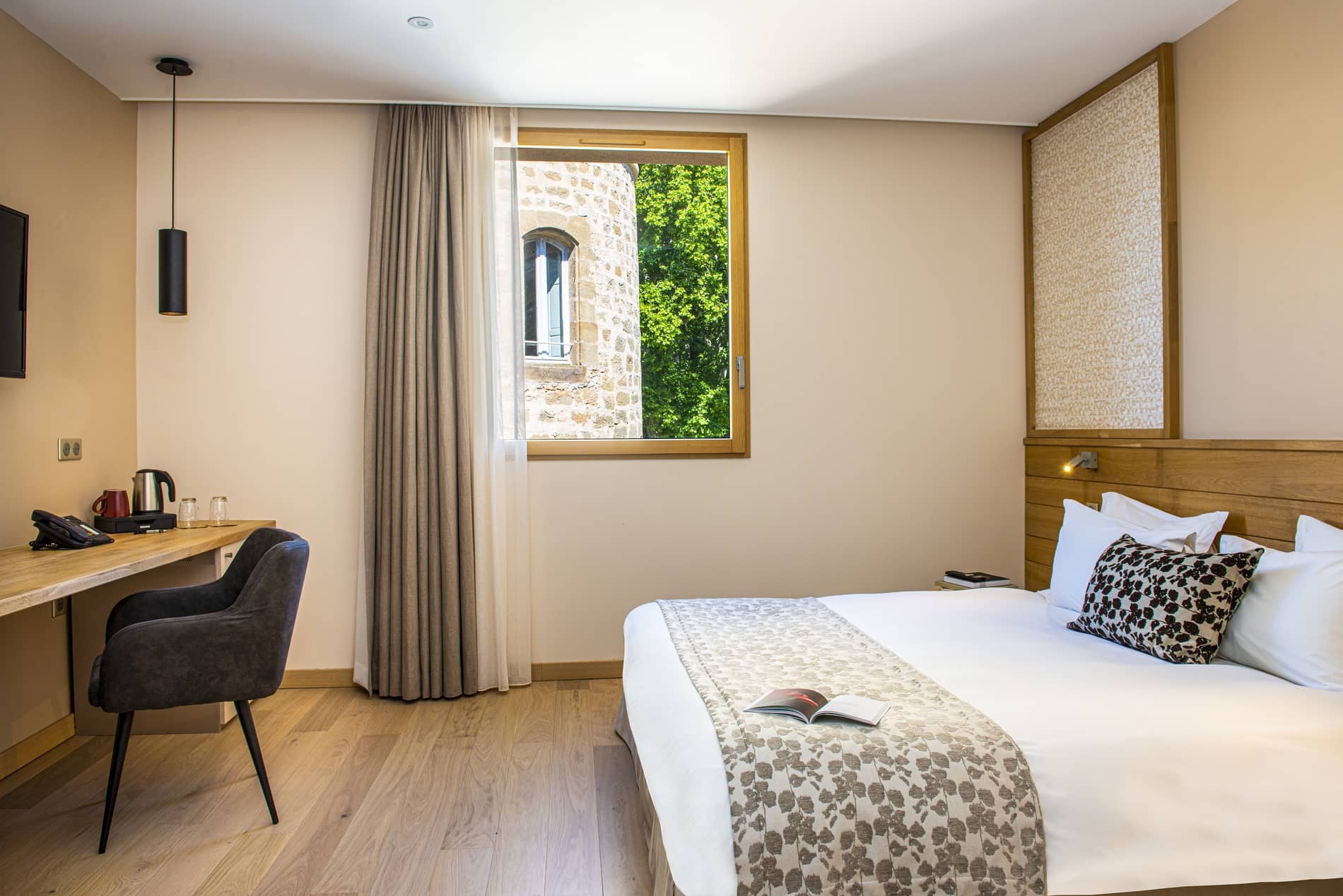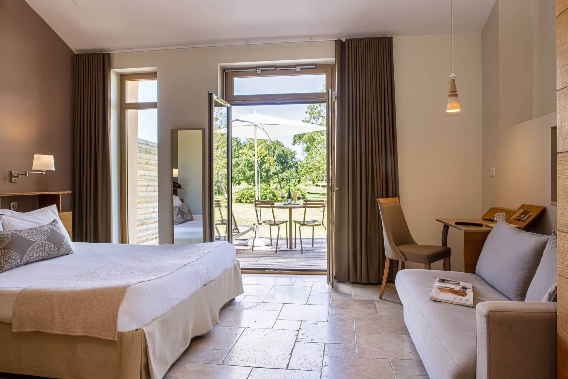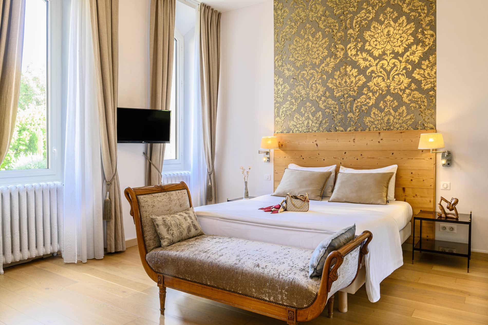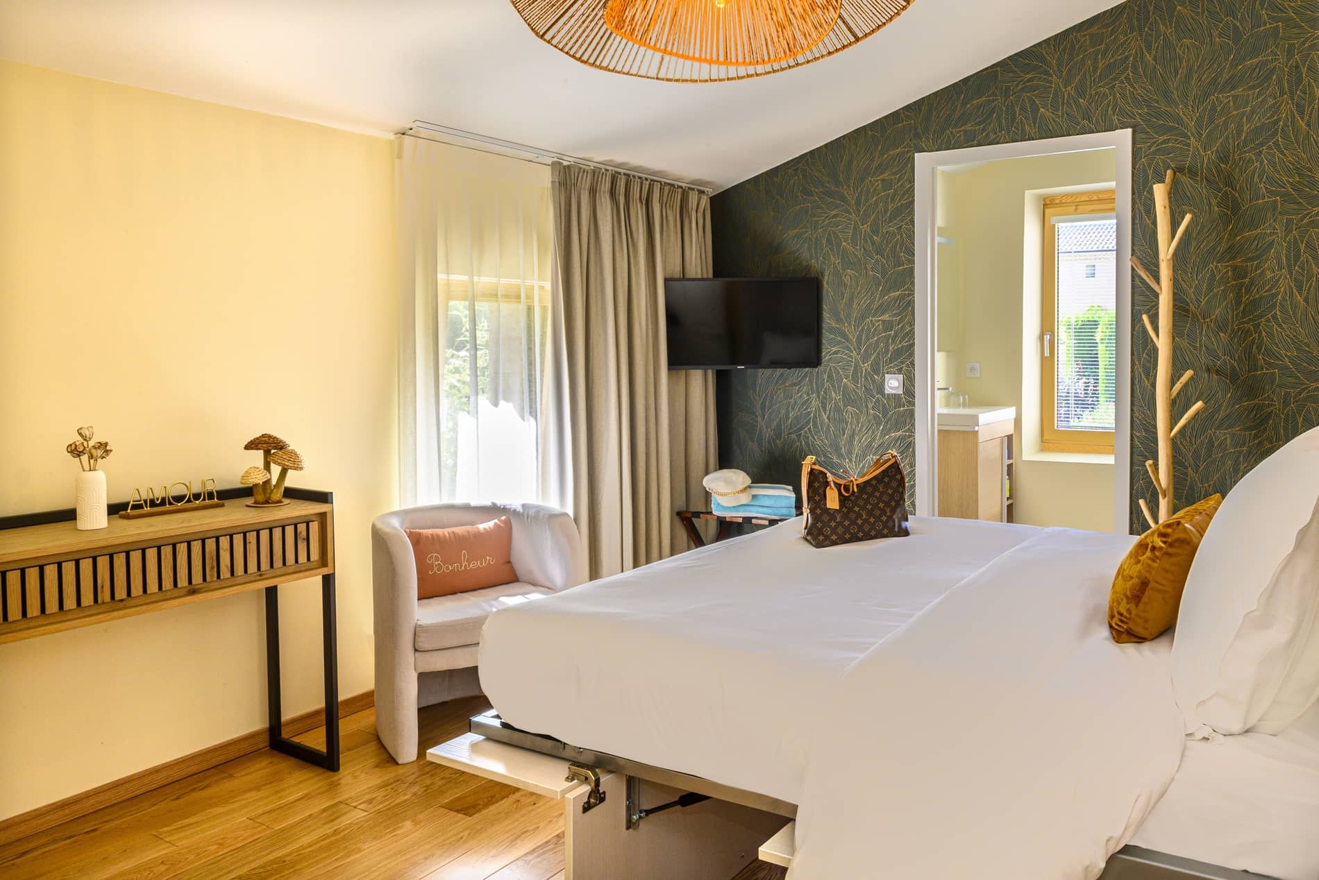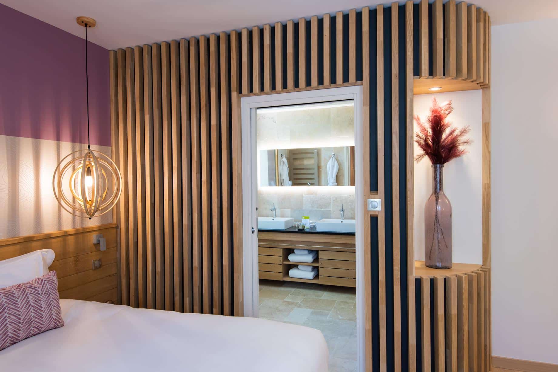Piscine intérieure du Bio Spa avec grande baie vitrée donnant sur le parc
