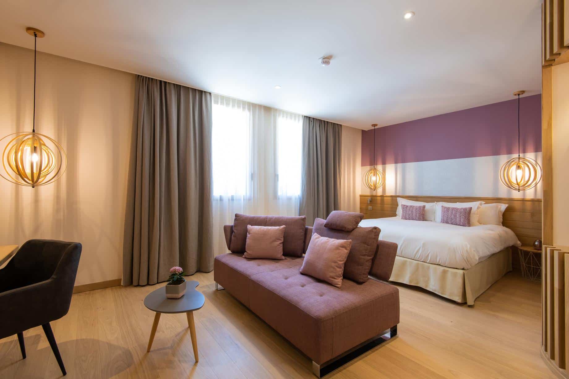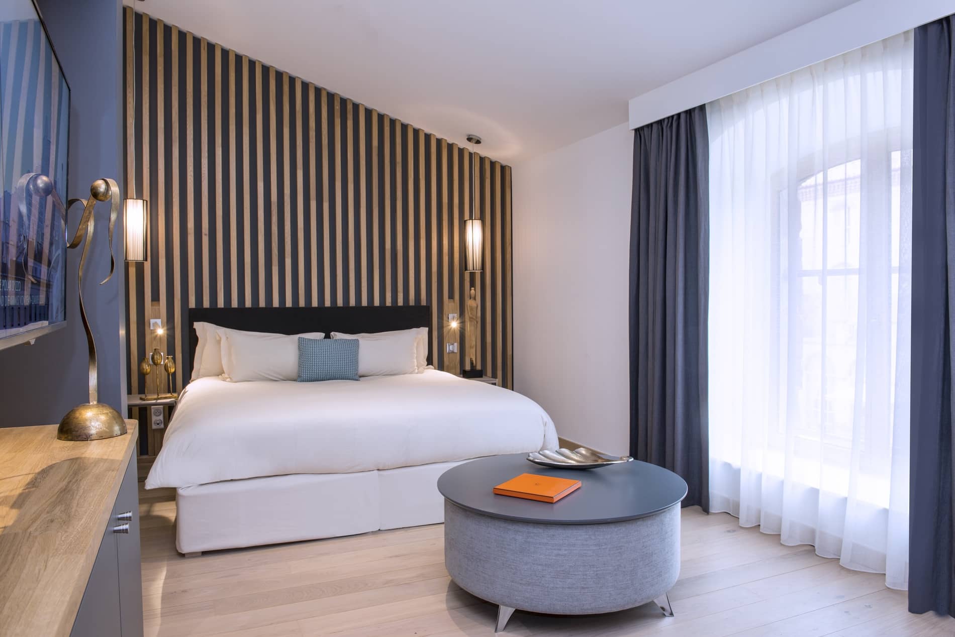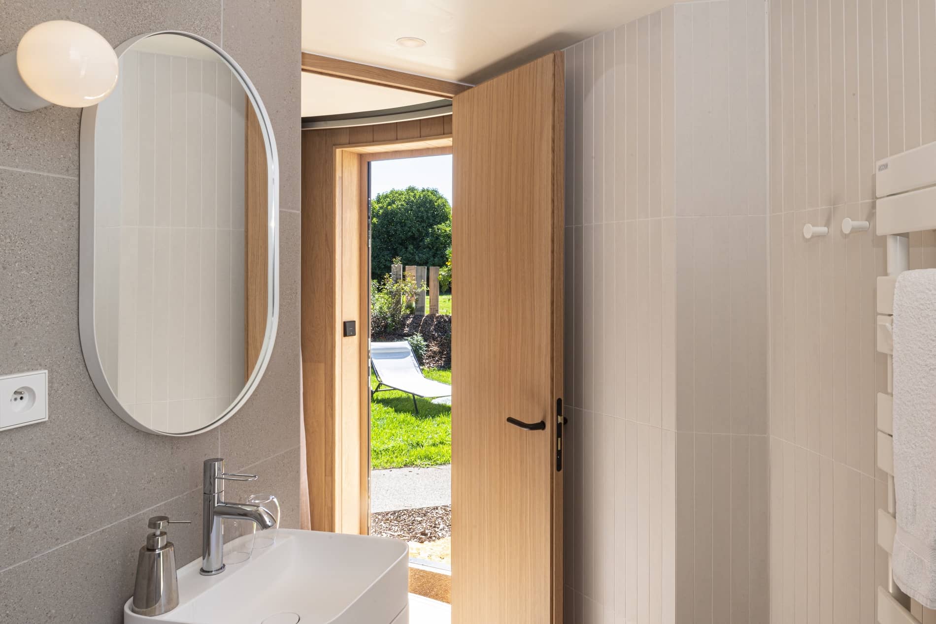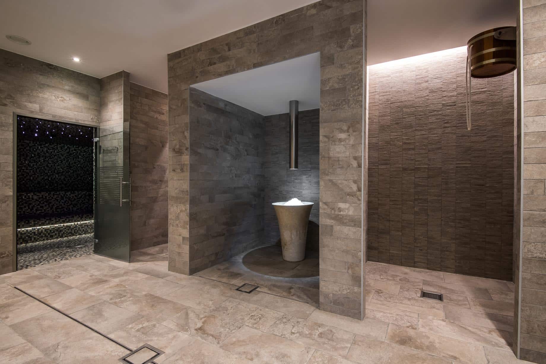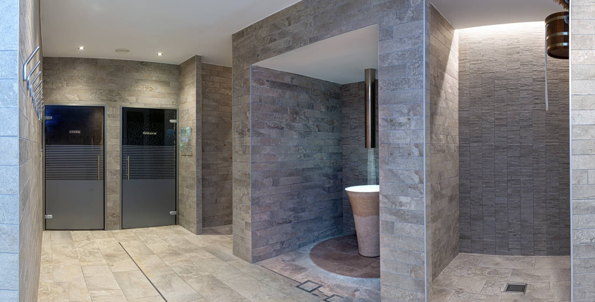 Piscine intérieure du Bio Spa avec grande baie vitrée donnant sur le parc