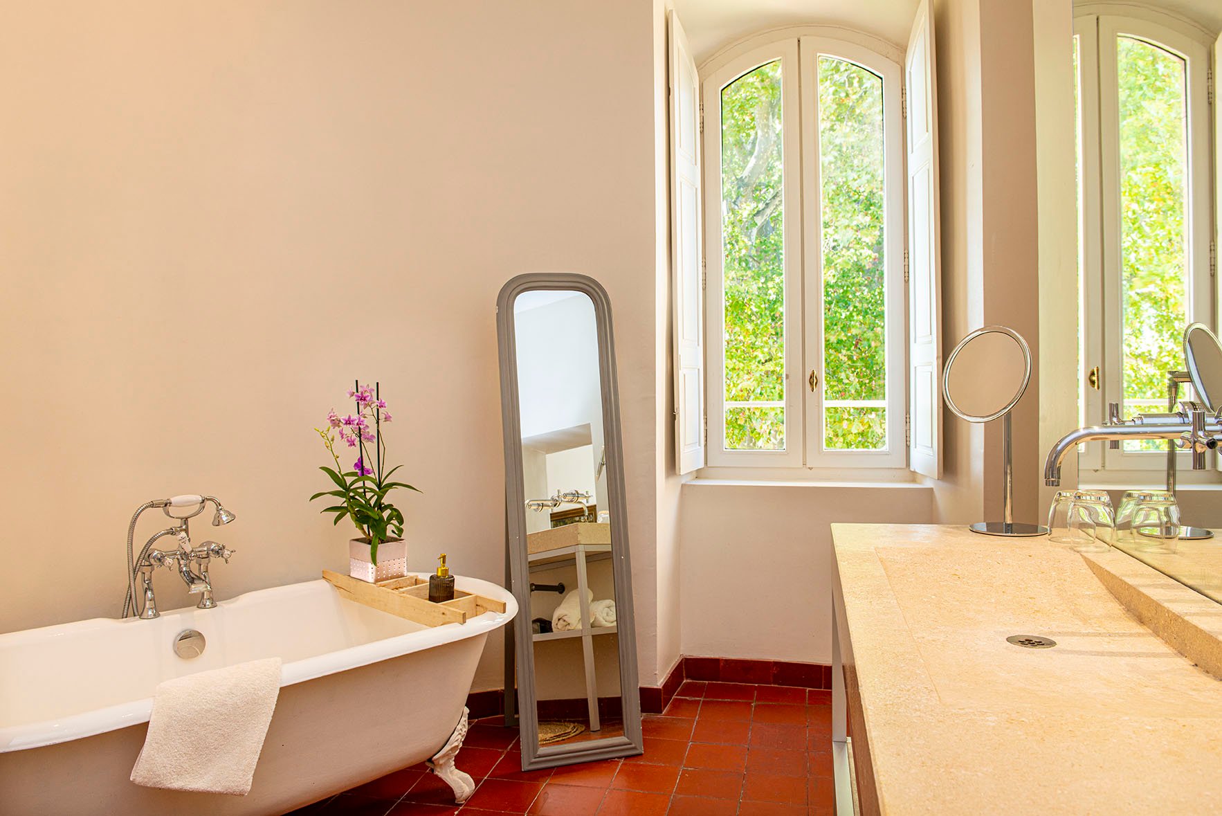 The second suite is in the bastide and designed with contemporary finishing touches, combining natural wood and linen materials. The bathrooms have bathtubs and walk-in showers.