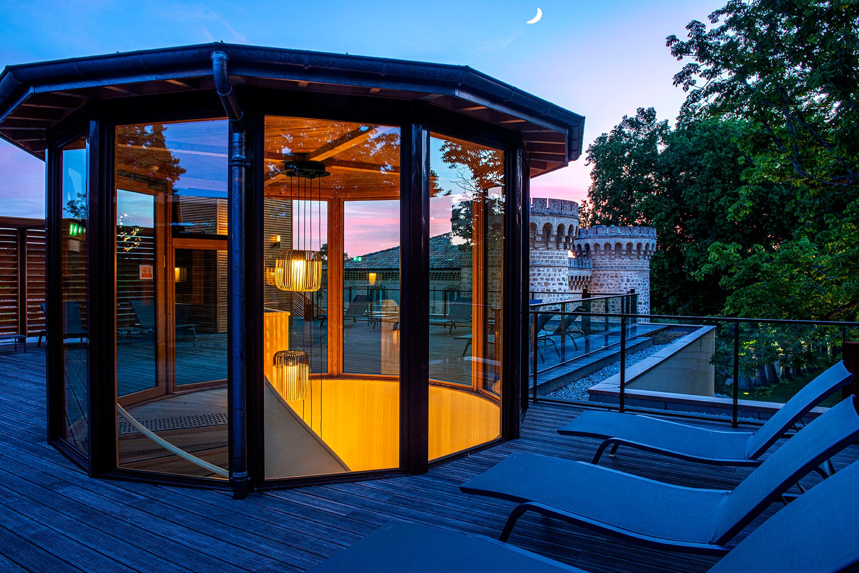 1 Hammam avec son ciel étoilé, 1 Sauna traditionnel à 80°, 1 Sauna aux herbes à 65° avec vue panoramique sur le jardin zen, notre douche expérience avec 5 plafonniers qui diffusent de l’eau sous plusieurs formes au fur et à mesure de votre avancée, avec jeux de lumières et effets sonores (3 programmes aux choix), 1 fontaine à glace revigorante, 1 seau d’eau cascade, espace détente avec transats confortables et citronnades.