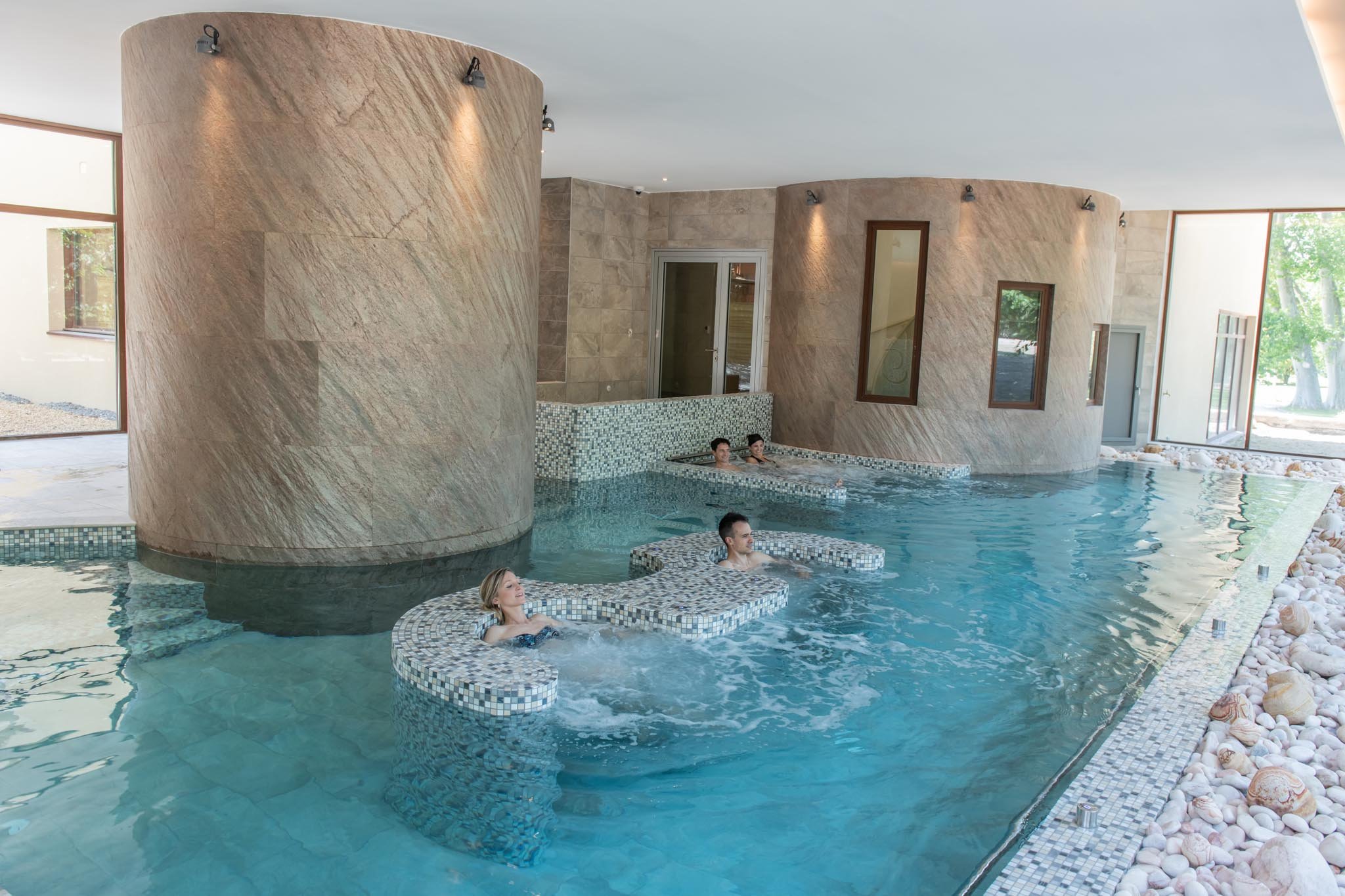 Notre bassin chauffé de 67m² vous accueille pour délasser et tonifier votre corps. Venez profiter de notre parcours aquatique et ludique avec ses effets relaxant, massant, drainant et tonifiant. Il comprend une douzaine de zones (un geyser au sol pour une décontraction maximale, un cobra pour masser votre nuque, une zone multi-tonique pour masser à la fois votre dos, votre ventre et votre taille, un lit d’hydromassage, une nage à contre-courant, 2 bikes pour pédaler avec des jets à contre-courant, tout ceci avec vue sur la nature.